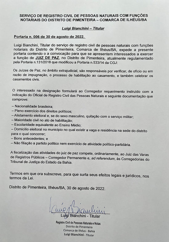 Convocação para Juízes de Paz